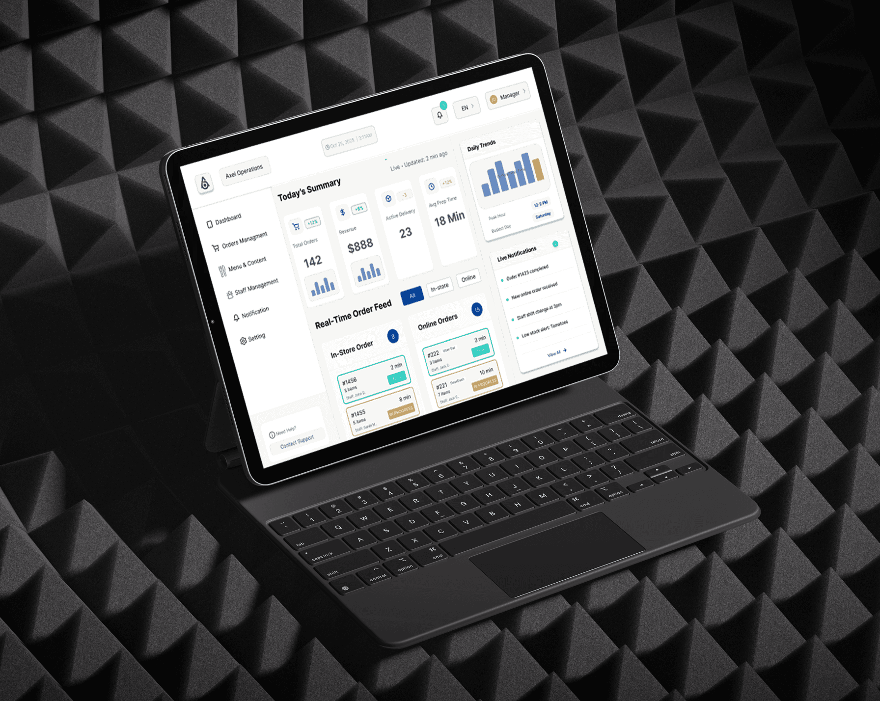 Axel is a unified management platform that streamlines restaurant operations by synchronizing orders, kitchen workflows, and delivery logistics into a single, real-time dashboard